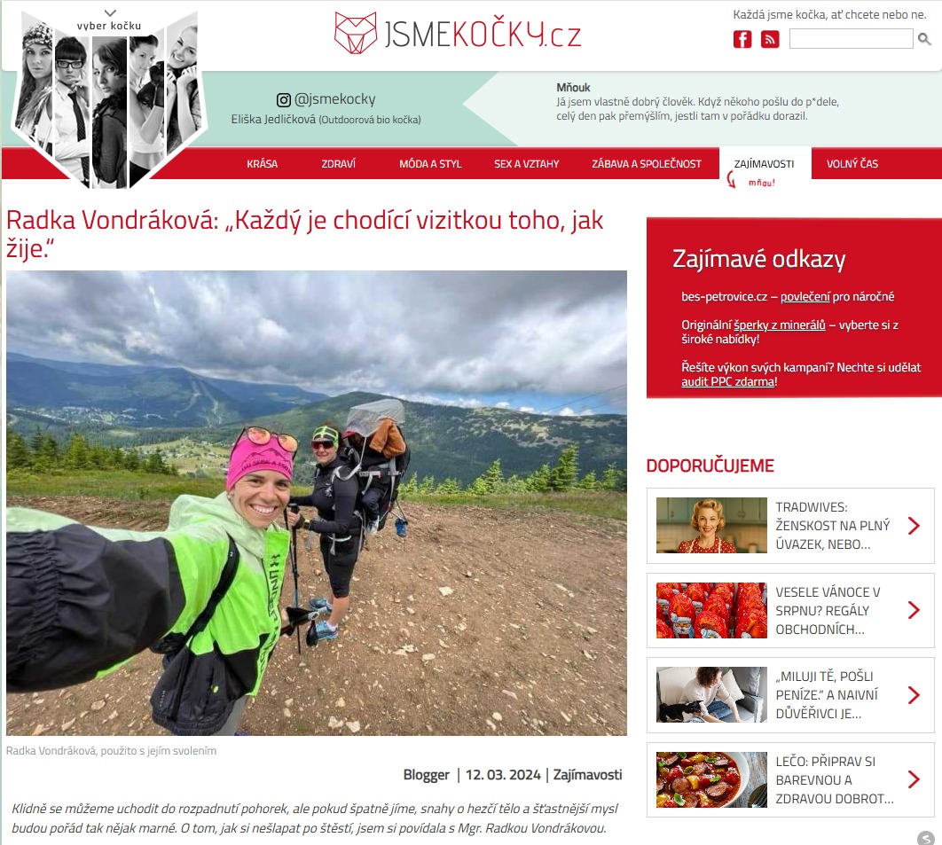Z tisku Napsali o mně Komunikace je základ úspěchu! Články a videa, které mapují mou cestu a práci www.jsmekocky.czwww.bajecnazena.czwww.idnes.czwww.jsmekocky.czwww.magazin.bajecnazena.cz